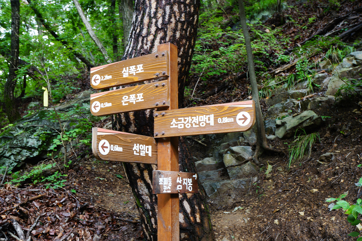 일반적인 트레킹코스는 연산폭포까지 왕복으로 다녀오게 되지만 선일대전망대와 소금강전망대는 적극적으로 추천합니다. 산길을 2㎞ 가까이 내렸다가 다시 올라가야 하기에 힘들지만 절경을 보기 위해서라면 기꺼이 가볼 만하지요.